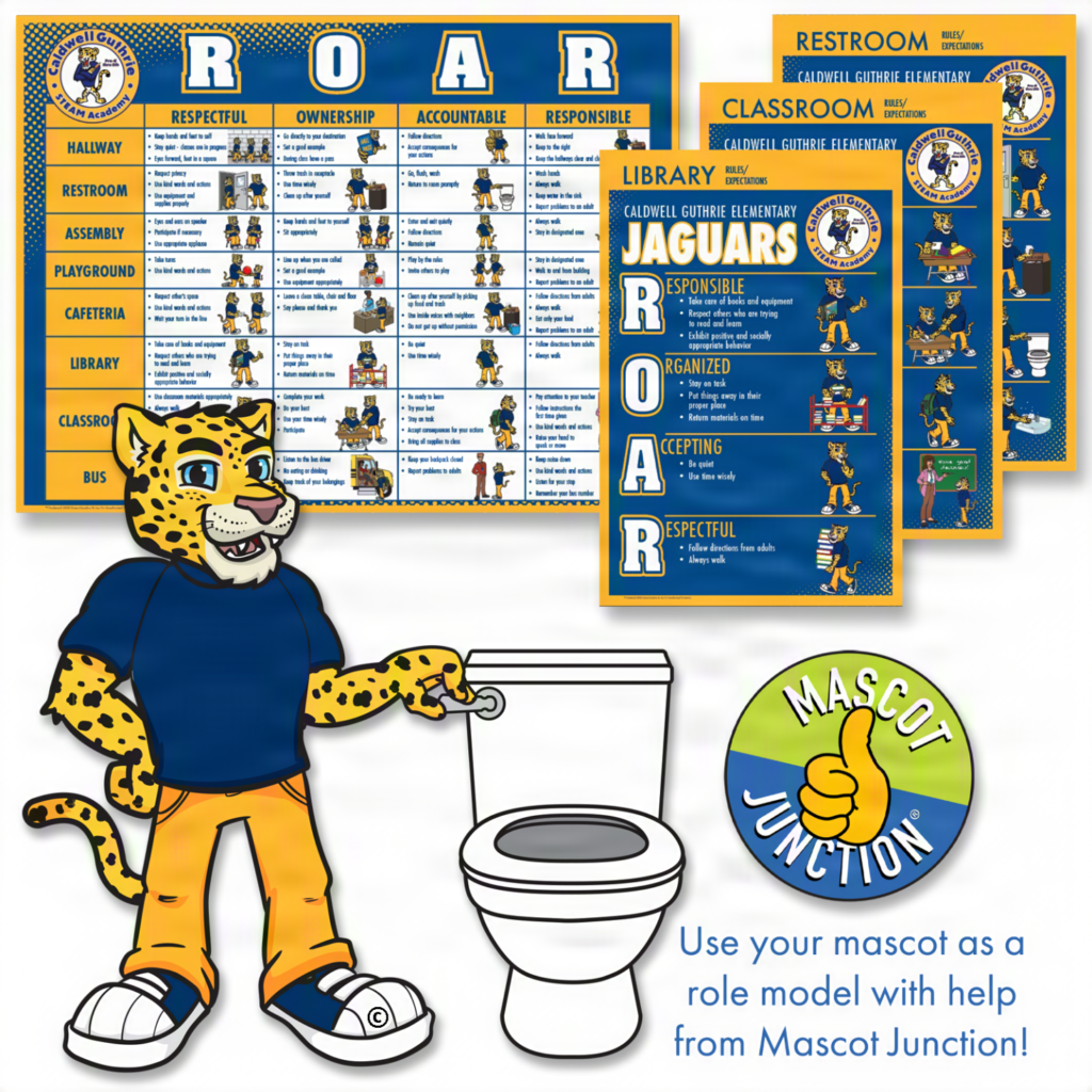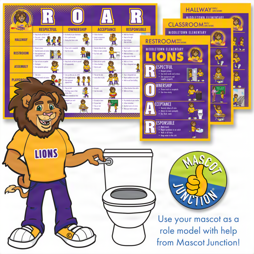 This PBIS matrix poster features a PAWS theme and a cougar mascot demonstrating targeted positive behaviors of the school’s PBIS program. By using the cougar mascot as a role model this school made it’s program more engaging and inclusive. Featuring the cougar promotes a strong sense of community and blends seamlessly with everything else the school does.